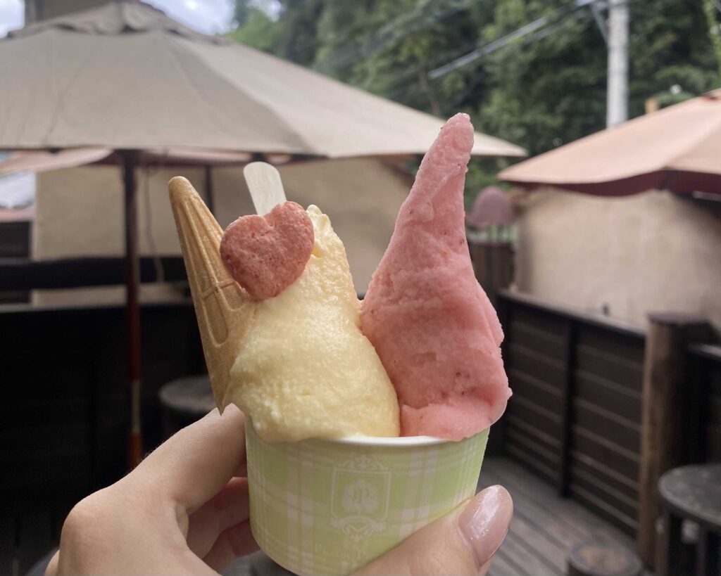 ジェラート屋さんやハンドメイドの雑貨屋さんが集まったぬくもりの森。