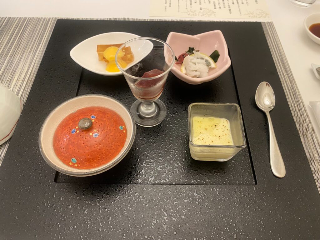 左上はゼリー上のおいしいやつで、右下はポタージュだったと思います。