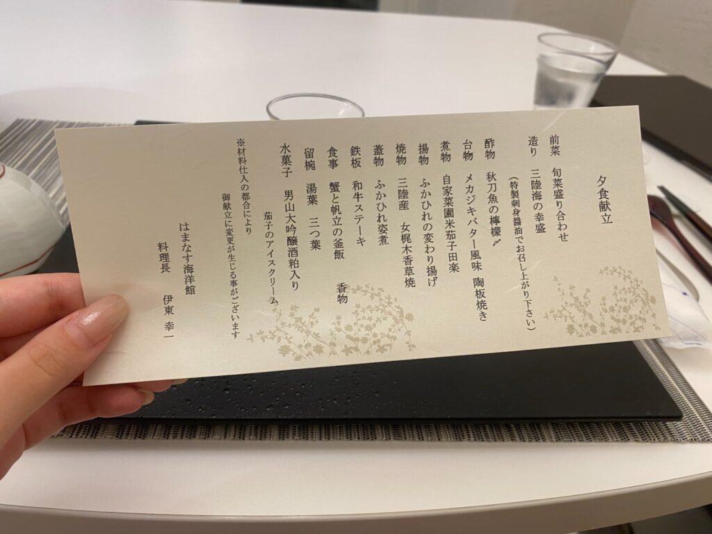 予約時に書いてあったメニューの一例とは少し内容が違いました。