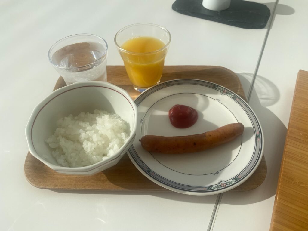 ご飯と飲み物はセルフサービスで、ご飯コーナーにはボイルされたウインナーなどもあり