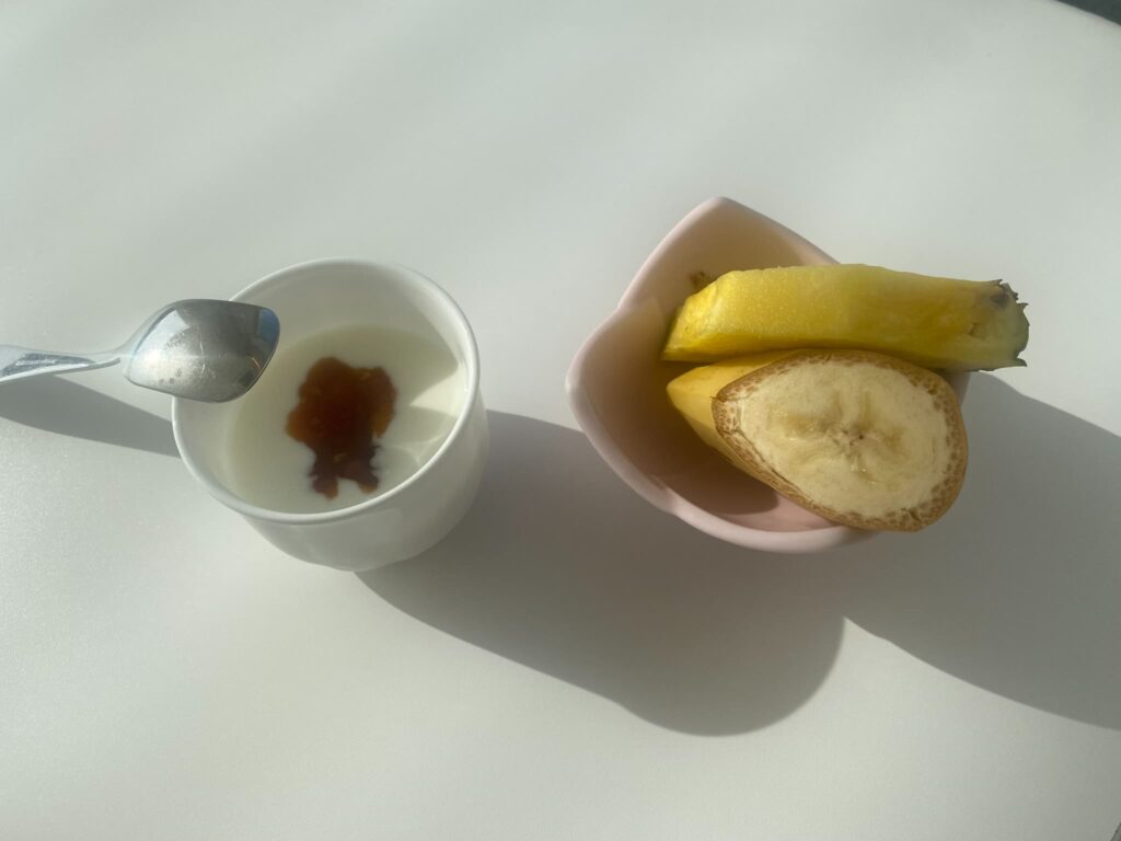 食べ終わったらデザートにバナナ、パイナップル、ヨーグルトを持ってきていただけました。